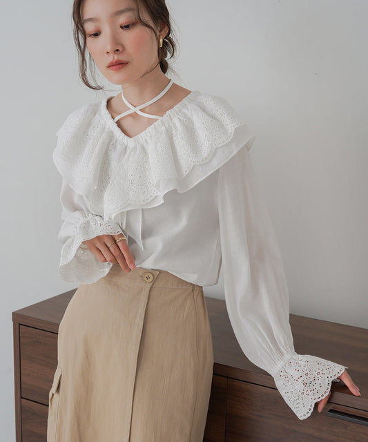 • BIG COLLAR LACE BLOUSE